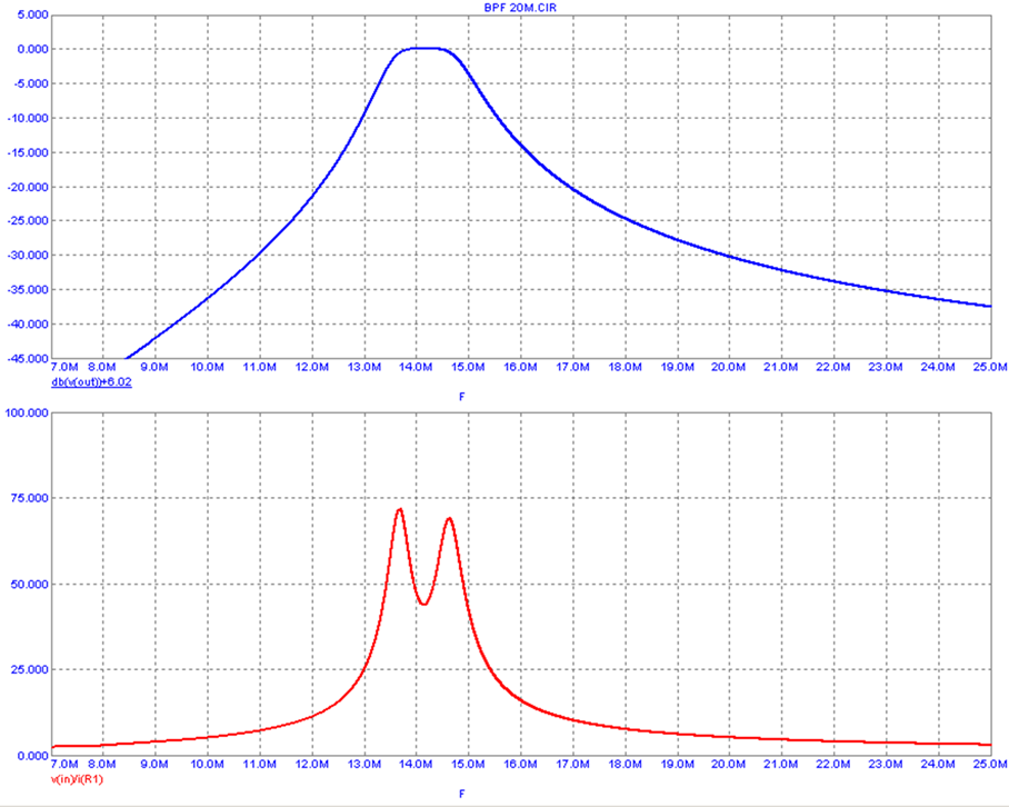 Frequency response (dB) and input impedance (ohm)