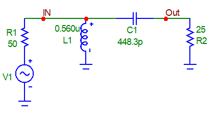 Example: high-pass,     14.2MHz, 25 to 50ohm