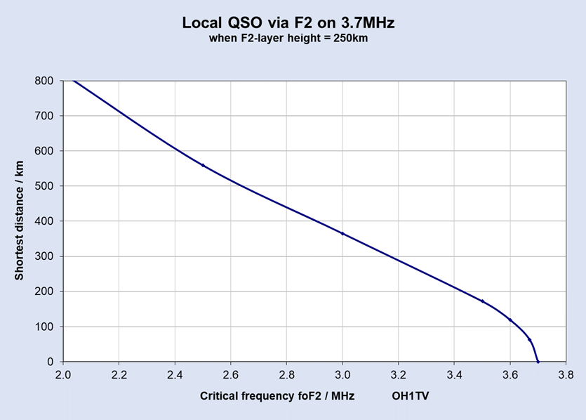 kilometers, QSO via F2 is possible when foF2 is 3.7MHz or more |
