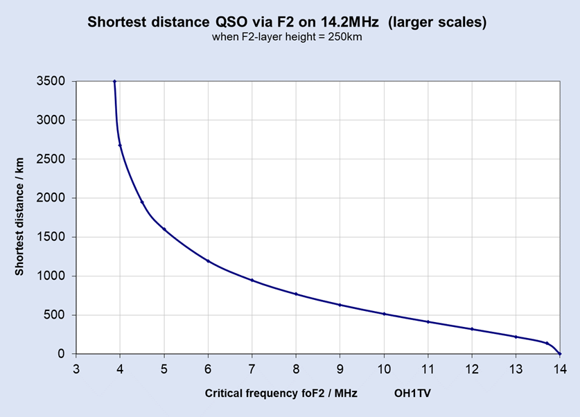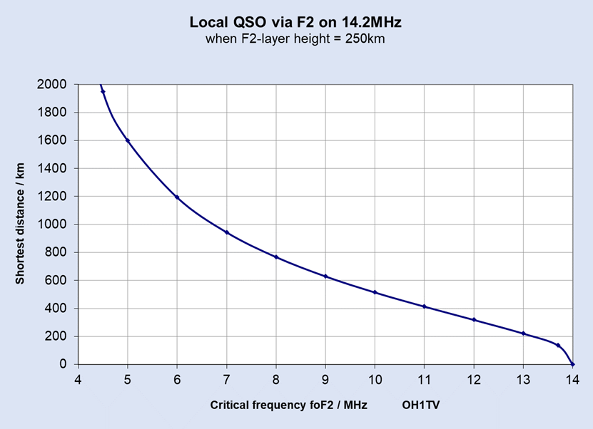 Very short ,few tens of kilometers, QSO via F2 is possible when foF2 is 14MHz or more