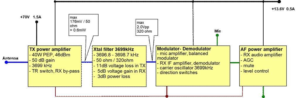 Block diagram of 3699 kHz LSB transceiver, 4 modules